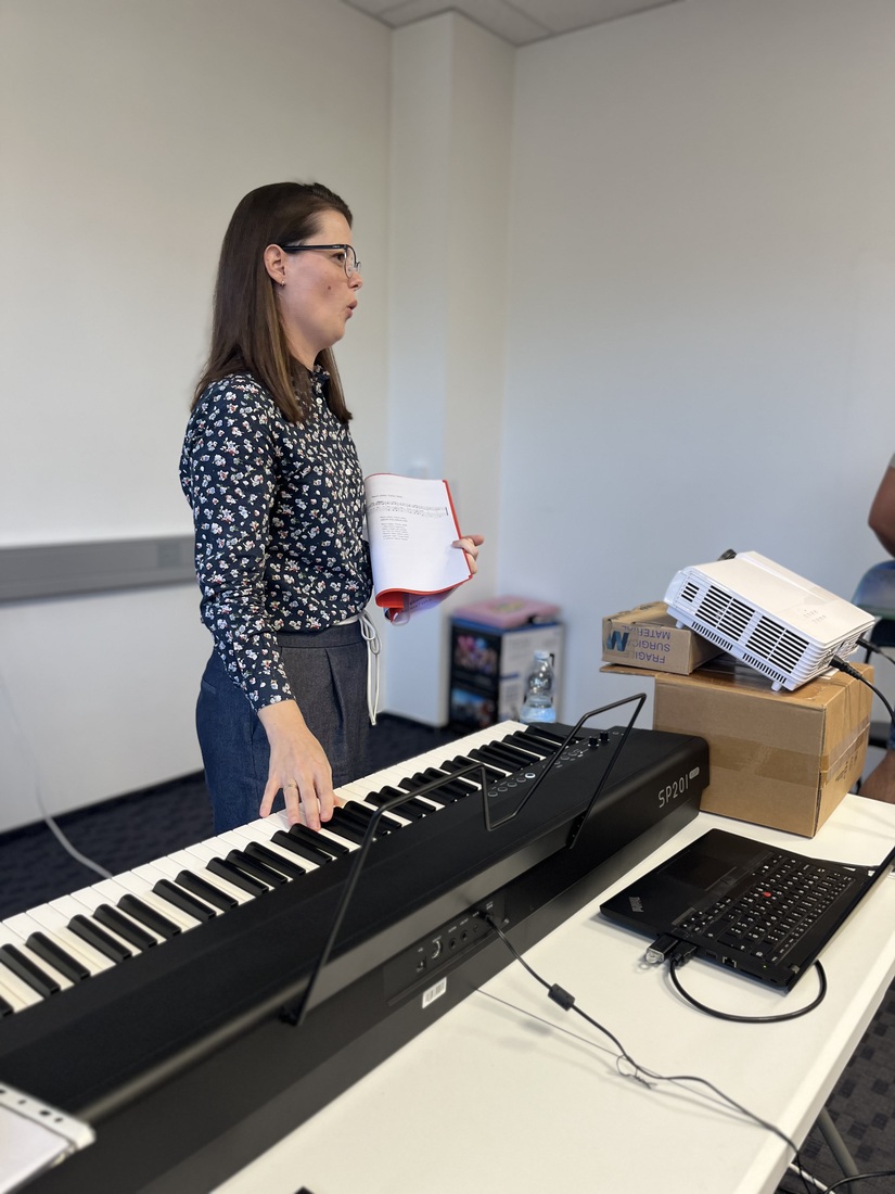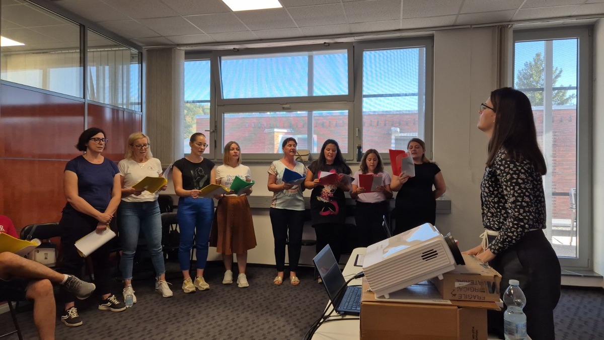 Predavateljica nam je predstavila teoretične osnove izvornega petja, potem pa smo se osredotočili na značilnosti petja iz Krajine. Moški in ženski pevski skupini je predstavila repertoar izvornih pesmi iz Krajine, katere pridno vadimo in se bomo z njimi prestavili na koncertu, ki bo 25. 10. 2025, v dvorani KS Škale.