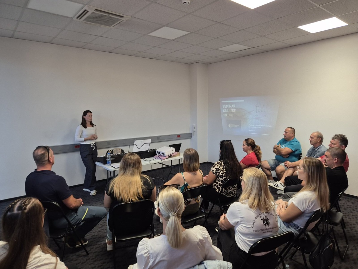Pretekli vikend, od 19. do 21. 9. 2025, smo organizirali seminar "Krajiške pjesme", na katerem nam je predavala Zorana Guja Dražeta, mag. etnomuzikologije. Seminar je bil namenjen tako moškim kot tudi ženskim pevskim skupinam, udeleženi pa so bili člani pevskih skupin našega društva in prijatelji iz pevskih skupin SKHD Desanka Maksimović iz Celja.