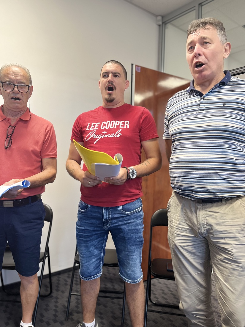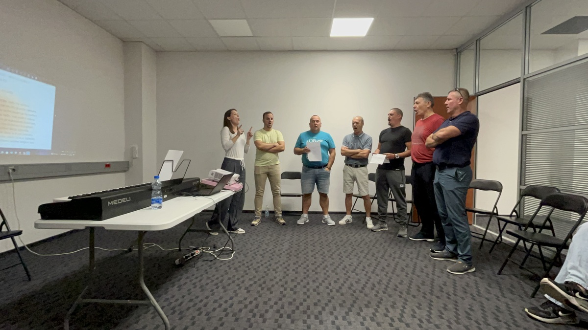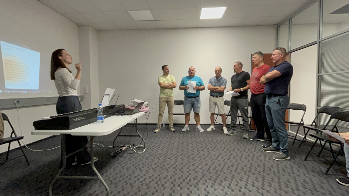 Predavateljica nam je predstavila teoretične osnove izvornega petja, potem pa smo se osredotočili na značilnosti petja iz Krajine. Moški in ženski pevski skupini je predstavila repertoar izvornih pesmi iz Krajine, katere pridno vadimo in se bomo z njimi prestavili na koncertu, ki bo 25. 10. 2025, v dvorani KS Škale.